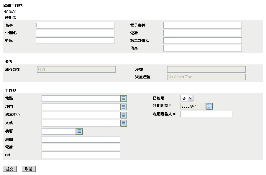 工作站: 工作站的相關基本資訊,包括地點、部門等。按一下右側的圖示,即可建立回應清單。按一下「租用到期日」欄位旁的行事曆圖示,以選擇日期。