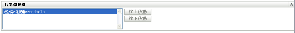 在「收集伺服器」面板中,使用及按鈕排列收集伺服器。