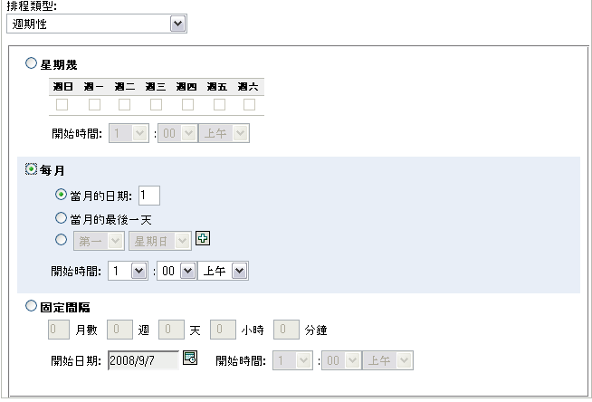 若要於每月執行掃描: