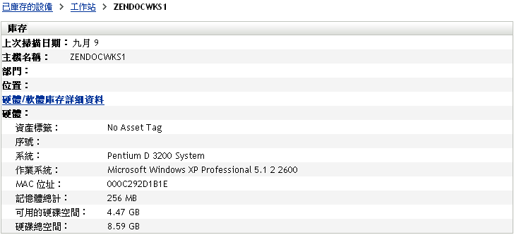 設備的庫存包含庫存掃描時所收集的硬體、軟體及使用者組資料等相關資訊。