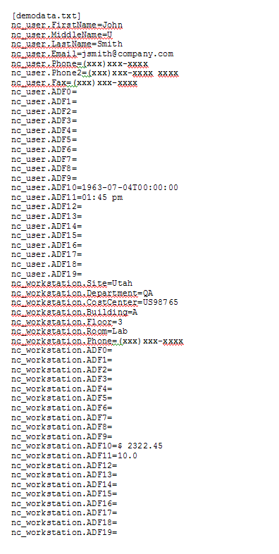 附註:只有那些已經透過「ZENworks 控制中心」設定的管理員定義的欄位才有資料儲存於此檔案中。