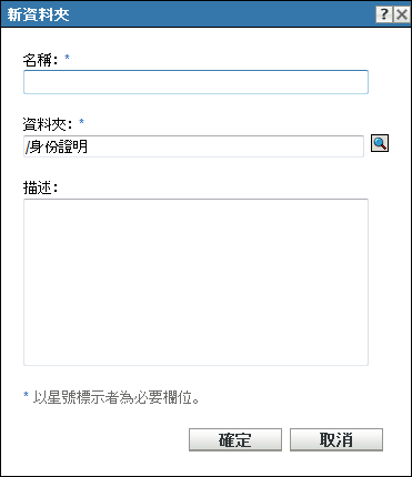 在「名稱」欄位中,指定資料夾的唯一名稱。