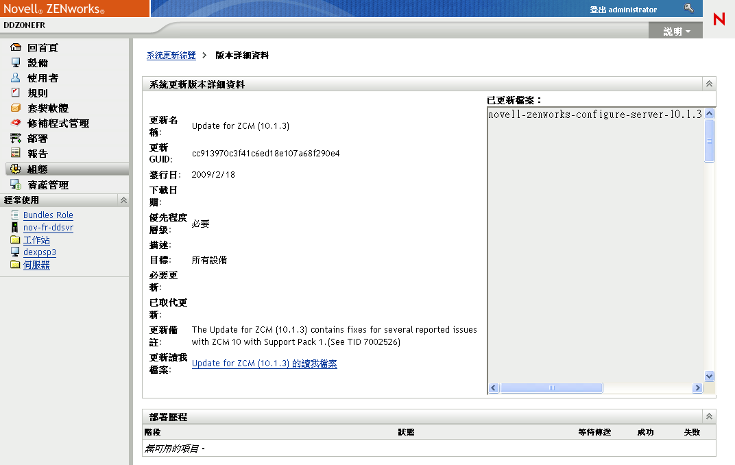 在 ZENworks® 控制中心中,按一下左側窗格中的