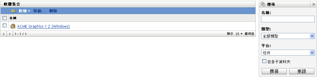從「軟體集合」清單中刪除某個軟體集合便可以移除該軟體集合。如果軟體集合已指定給授權產品,則該軟體集合及其授權數量都將從授權產品中移除。