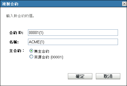 合約 ID︰ 為合約指定新識別碼。此合約 ID 不能與資料夾中的其他合約 ID 相同。