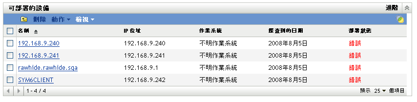 符合 ZENworks Adaptive Agent 要求的設備將顯示在「ZENworks 控制中心」內「部署」頁面之「可部署的設備」面板中。