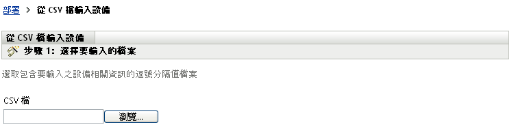 在左側導覽面板的清單中,按一下,以啟動「從 CSV 檔輸入設備」精靈。