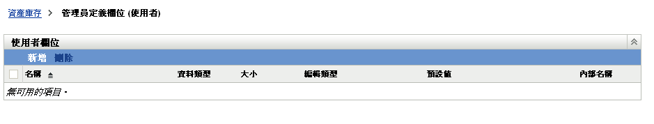 「使用者欄位」面板會顯示現有的已定義欄位以及下列資訊: