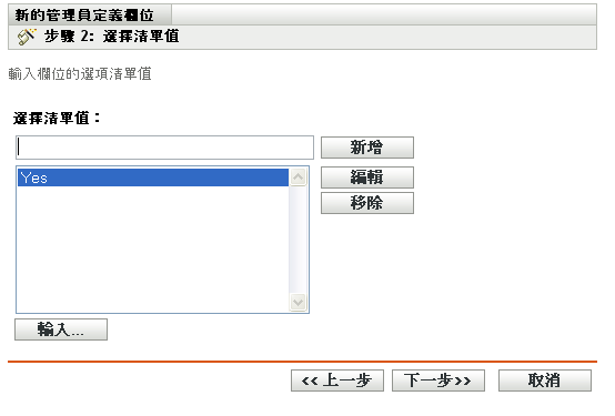 若在步驟 4中選擇的為或,請指定選項清單值並按。