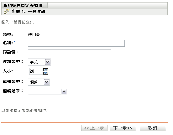 名稱: 管理員定義欄位的名稱。此為必填欄位。