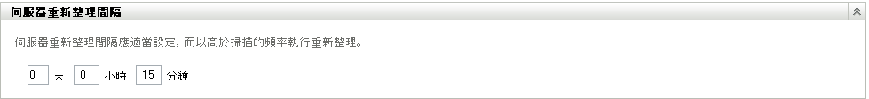 重新整理間隔應予設定,以使重新整理發生的頻率高於掃描並低於伺服器重新整理。預設值為 12 小時。