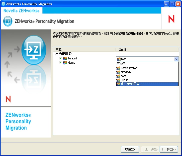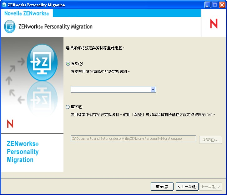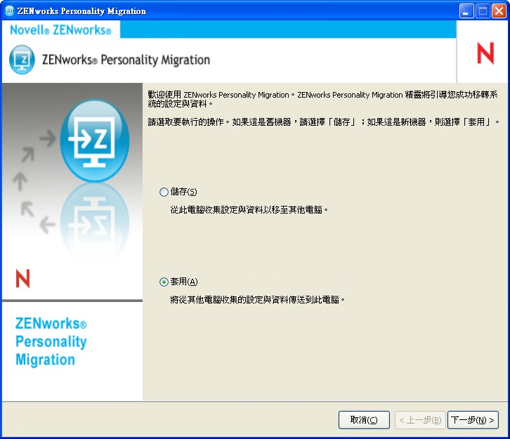 確定目的設備上安裝有 Personality Migration。如需詳細資訊,請參閱節 2.2, 在 Windows 上安裝 ZENworks Personality Migration。