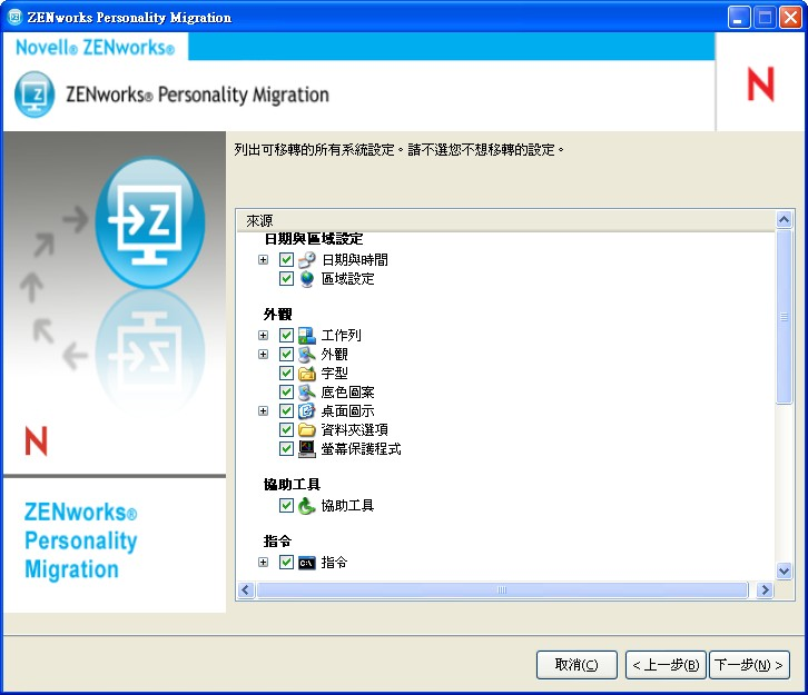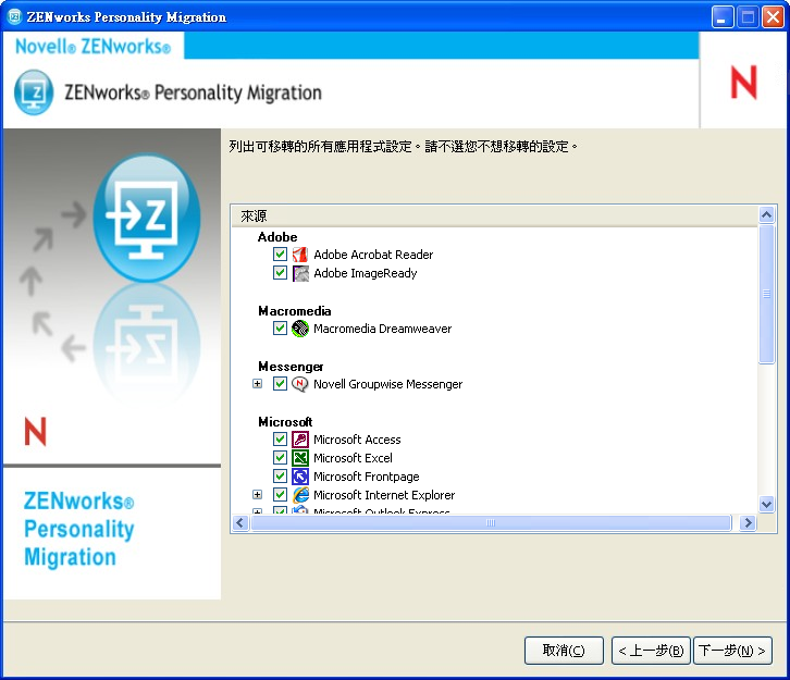 關閉要移轉其設定的應用程式 (系統還會提示您在啟動 ZENworks Personality Migration 時關閉開啟的應用程式)。