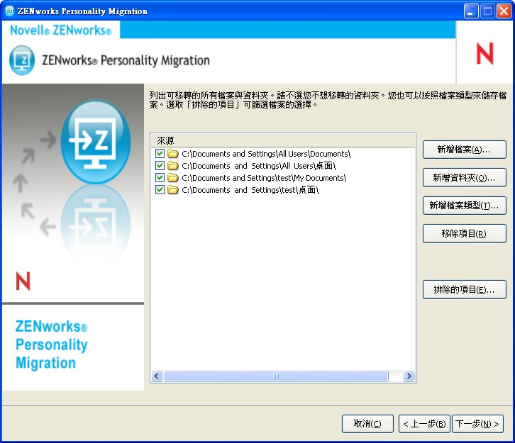 此頁面還可讓您將檔案、資料夾或特定類型的檔案新增到一份移轉檔案清單中。