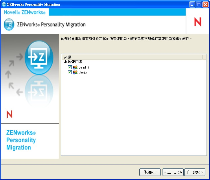 在安裝了 ZENworks Personality Migration 的目的系統上,選取要套用其設定與資料的來源系統。