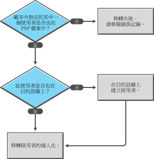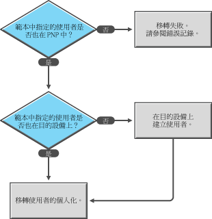 移轉使用者的個人化,但不依照使用者名稱映射使用者。