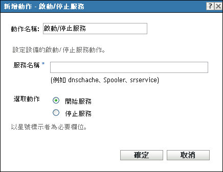 「動作 - 啟動/停止服務」對話方塊可讓您指定要啟動或停止的服務。