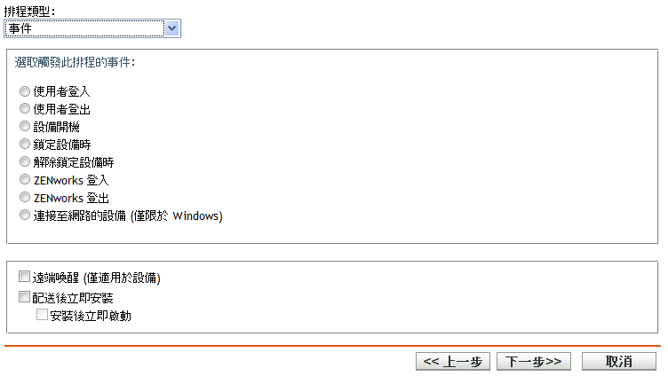 附註:設備啟動時,ZENworks® Adaptive Agent 會根據設備重新整理排程聯絡 ZENworks 伺服器,以重新整理設備的套裝軟體、規則、組態和登錄資訊。若資訊有變更,調適性代理程式必須在這些變更出現於設備之前先重新整理其資訊,即使發生了一個事件觸發項目亦如此。依預設,設備啟動之後會進行 300 到 360 秒的隨機重新整理,並每隔 12 小時進行一次全面的重新整理。