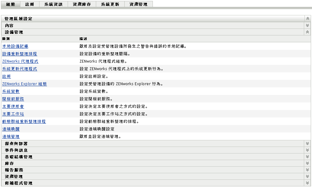在「ZENworks 控制中心」中,按一下「組態」索引標籤。