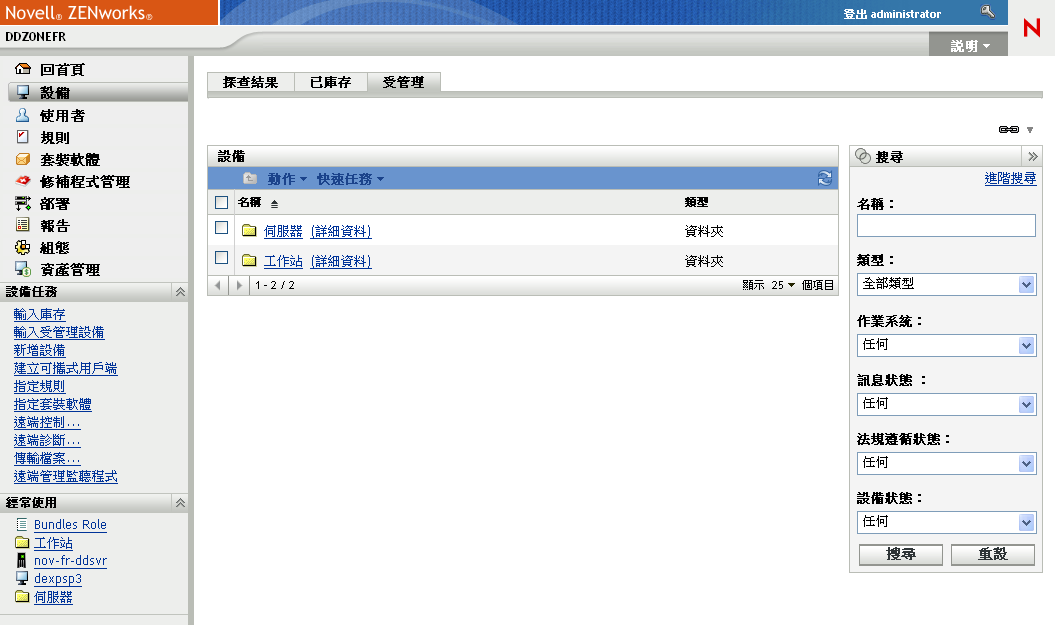 在「ZENworks 控制中心」中,按一下「設備」索引標籤。