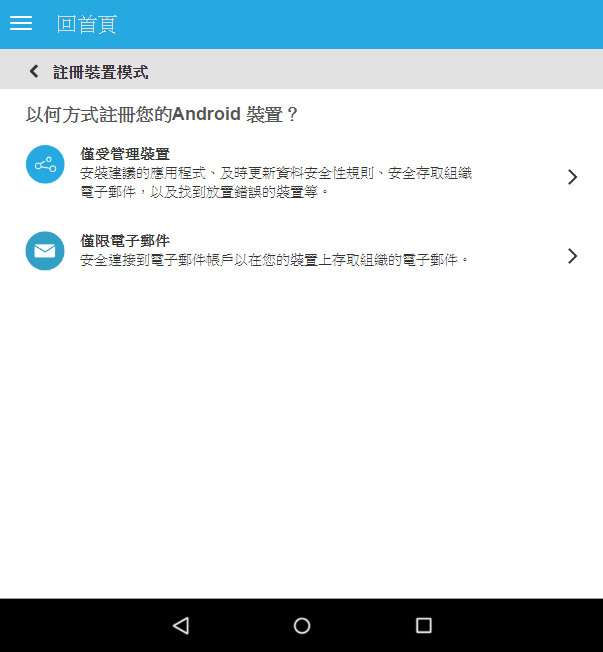 註冊選項由指定給使用者的行動裝置註冊規則決定。