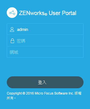 ZENworks 使用者入口網站的登入螢幕即會顯示。您可以使用 ZENworks 使用者入口網站將裝置註冊到區域。