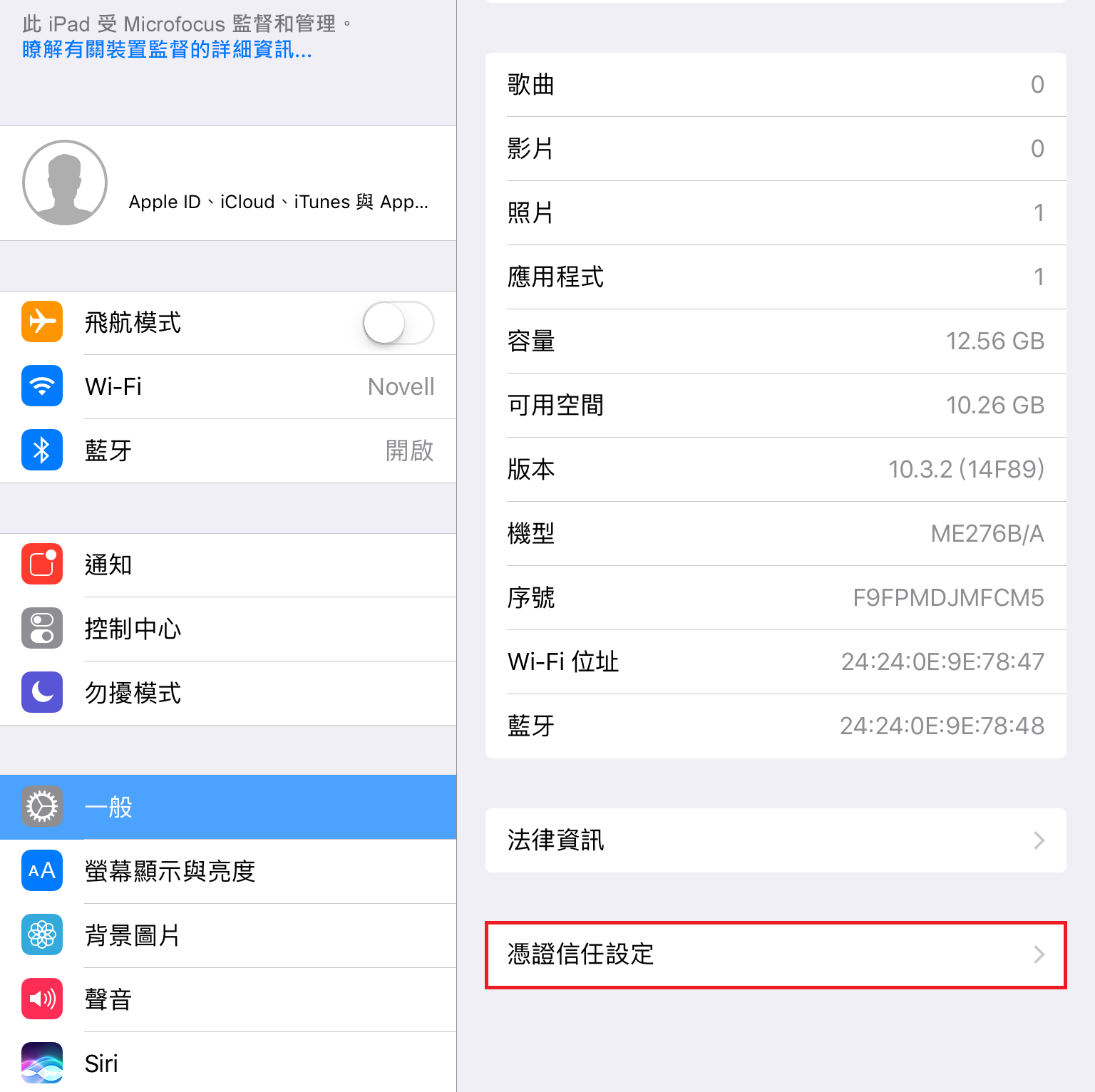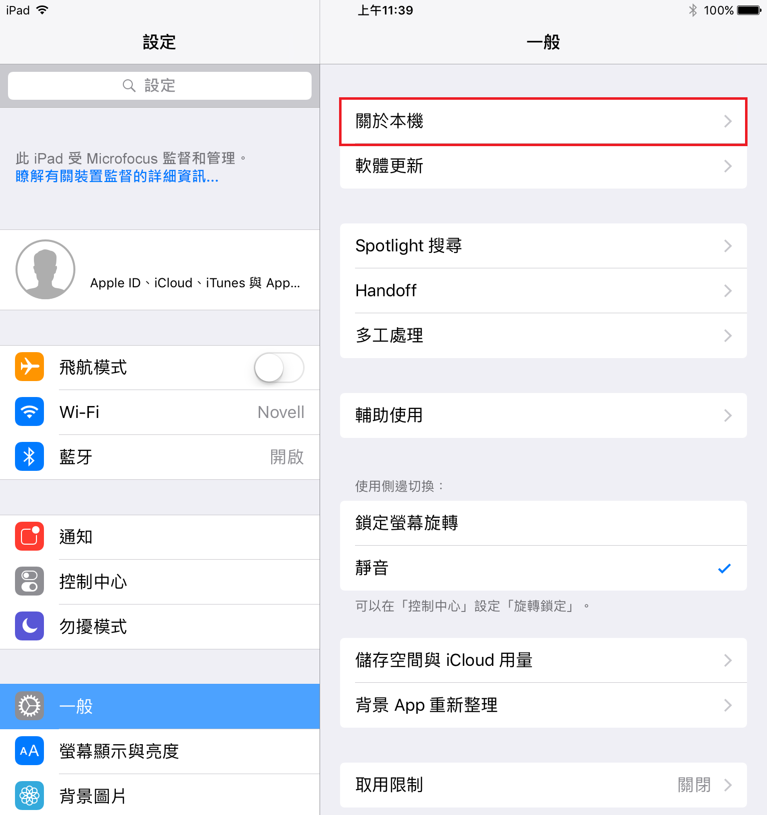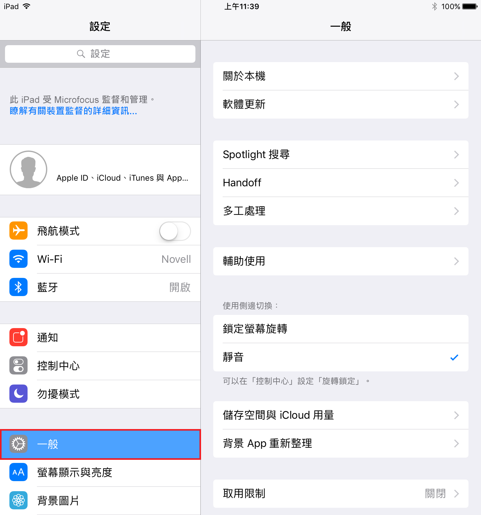 導覽至裝置上的設定功能表,然後按一下一般。