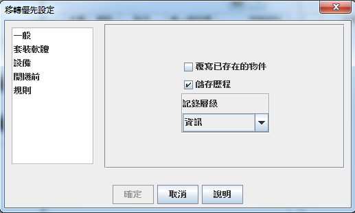 移轉優先設定允許您進行選擇,以便自定移轉程序。