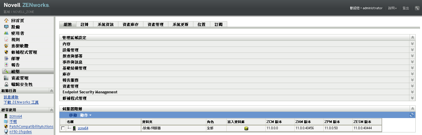 按一下 ZENworks 控制中心中的,以顯示「組態」頁面。