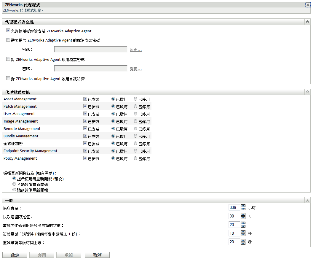 若不想安裝某個功能,請不選功能旁邊的「已安裝」。該選定的功能將不會安裝到設備上。若您選擇不選所有功能,則只會安裝核心代理程式。