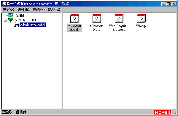 eDirectory 樹狀結構: 每個樹狀結構均包括與使用者或工作站關聯的應用程式 (位於樹狀結構內部)。Application Window 僅顯示使用者和工作站通過驗證的樹狀結構。