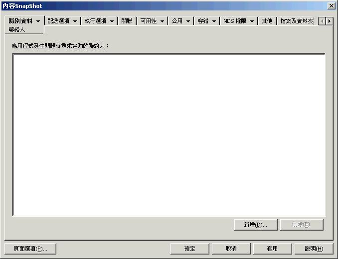 在為所有應用程式類型 (簡單、AOT/AXT、MSI、Web 和終端機伺服器) 建立的應用程式物件上,均可使用「聯絡人」內容頁。