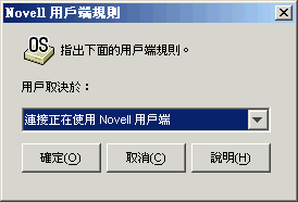 用戶端: 可讓您要求執行 (或不執行) Novell Client 的工作站。如需更多資訊,請參閱用戶端。