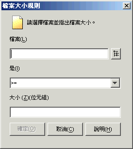 選取大小是必須小於、小於或等於、等於、大於,還是大於或等於「大小」欄位中輸入的大小。相應的運算子如下: