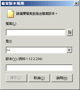 選取版本編號是必須小於、小於或等於、等於、大於,還是大於或等於「版本」欄位中輸入的編號。