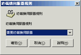 終端機伺服器: 可讓您要求是 (或不是) 終端機伺服器的工作站。如需更多資訊,請參閱終端機伺服器。