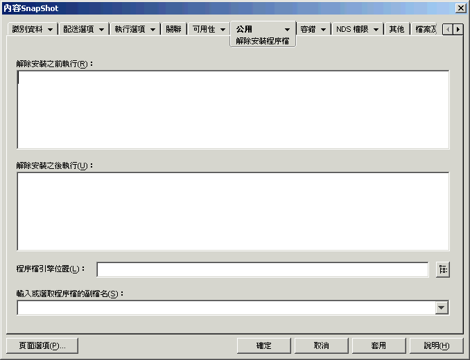 圖 48-50 應用程式物件 >「公用」索引標籤 >「解除安裝程序檔」
