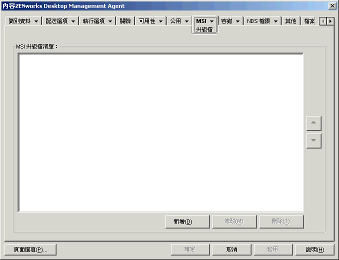 圖 48-54 應用程式物件 >「MSI」索引標籤 >「升級檔」頁
