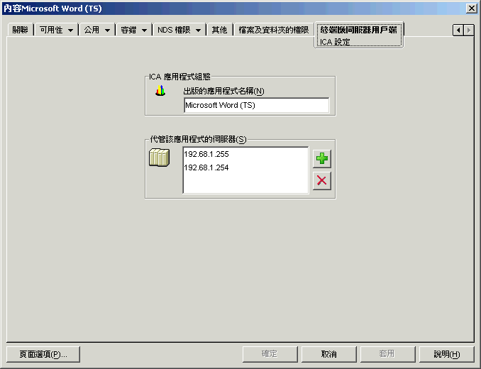 圖 48-55 應用程式物件 >「終端機伺服器用戶端」索引標籤 >「ICA 設定」頁