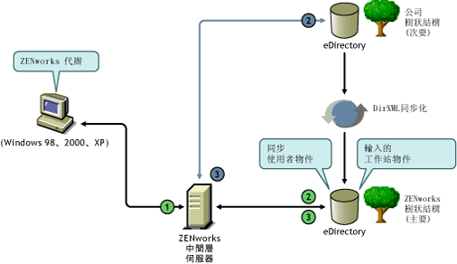 工作站會透過中間層伺服器進行 ZENworks 樹狀結構驗證。 |