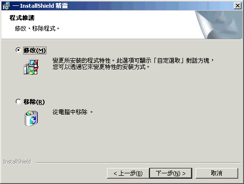 修改: 選取此選項可開啟「選取功能」頁。在此頁上,您可以新增或刪除要在桌面管理代辦安裝中包含的功能。
