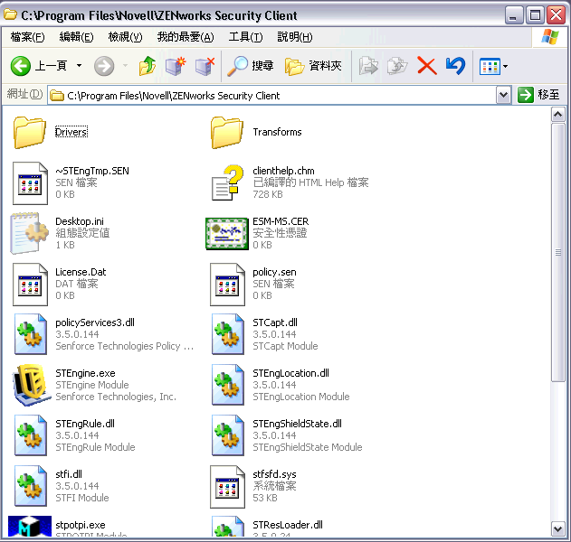 瀏覽已建立的 MSI 複本並開啟 "\program files\Novell\ZENworks Security Client\" 資料夾。