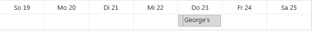 Ganztägige Ereignisse befinden sich ganz oben im Kalender im Bereich „Ganzt. Ereign.“ der Tages- und Wochenlayouts.