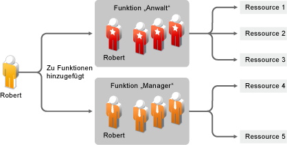 Oft hängt es von der Funktion eines Mitarbeiters in einer Organisation ab, auf welche Ressourcen er Zugriff benötigt. Zum Beispiel benötigen die Anwälte einer Kanzlei vermutlich auf andere Ressourcen Zugriff als die Anwaltsgehilfen.