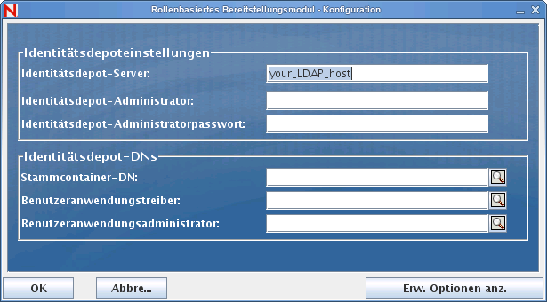 Abbildung A-1 Standardoptionen für die Konfiguration der Benutzeranwendung