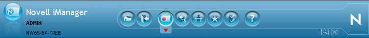 Darüber hinaus zeigt der Header-Rahmen oben links den derzeit authentifizierten Benutzer und den Baumnamen für iManager.