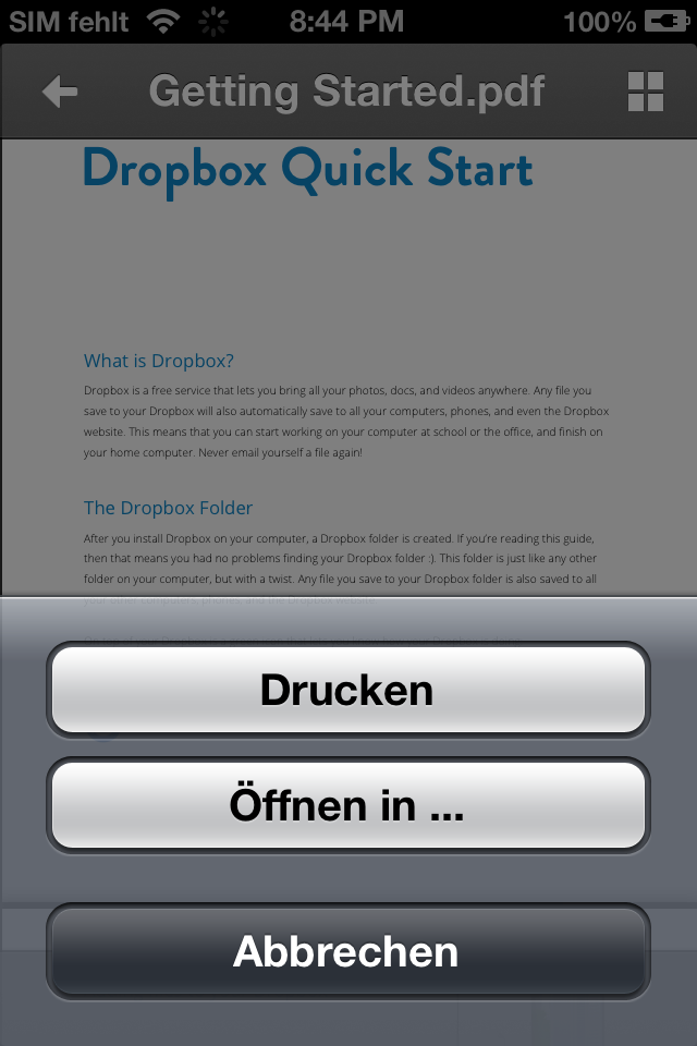 Auf iOS-Geräten ist das Drucken mit Novell iPrint nur über Anwendungen möglich, die die Funktion unterstützen.
