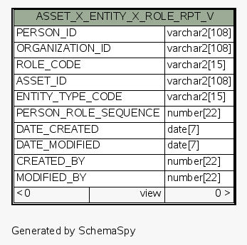 | View ESEC.ESECDBA.ASSET_X_ENTITY_X_ROLE_RPT_V | Generated by SchemaSpy |