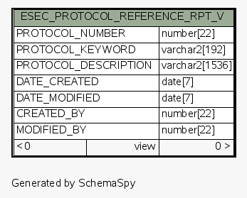 | View ESEC.ESECDBA.ESEC_PROTOCOL_REFERENCE_RPT_V | Generated by SchemaSpy |