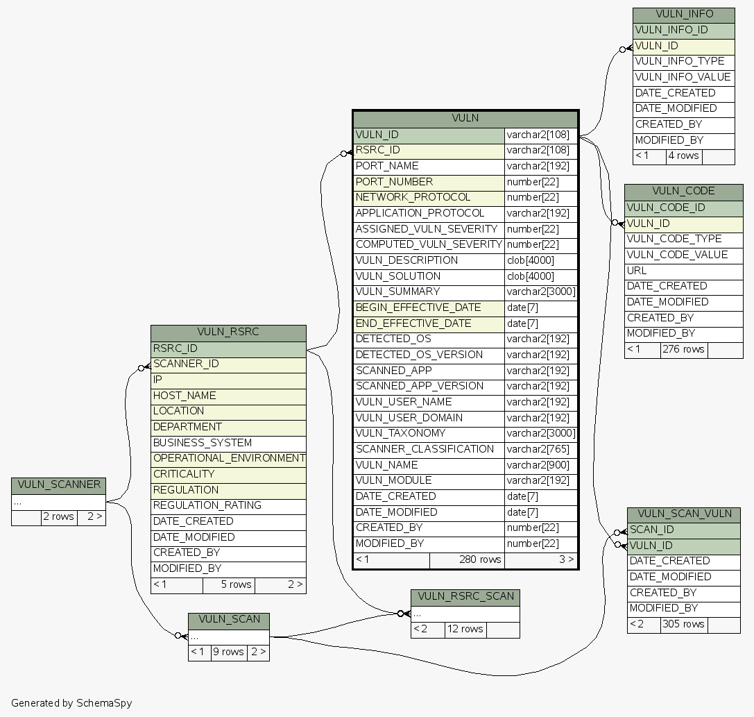 | Table ESEC.ESECDBA.VULN | Generated by SchemaSpy |